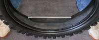 チューブが無い分交換が楽かと思われがちですが、TUBLISSとタイヤのビード部分で気密を保つために異物の混入には注意が必要で、泥まみれの環境での交換は無理だと思った方が良いでしょう。また上図のようにTUBLISS本体とタイヤのビード部分が近接しているためにタイヤレバーなどでTUBLISSに傷を付けるとそこから気密が崩れる場合があります。ですから不必要に急ぐ交換には向きません。 |