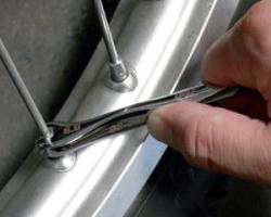オフロードモデルのほとんどが採用するスポークタイプのホイールは衝撃の吸収性に長けているのですが、緩みが生じると致命的なトラブルになる場合がありますので定期的な点検が必要です。 そんな時に素早く、しかもしっかりと締めることが出来る工具です。 ◆何が良いの? 片側が普通のニップルレンチ、もう片側が力の掛かり易い3サイドオープンレンチになっています。 素早く締める時は通常の形状の方で、しっかりトルクを掛ける時は3サイドオープンの方で行う事でしっかりと締める事が出来ます。
