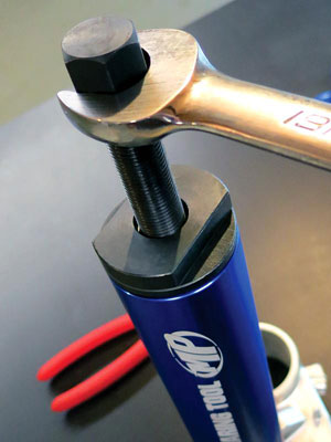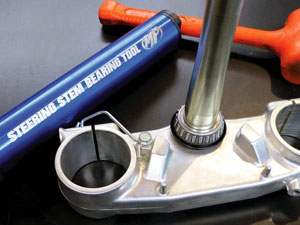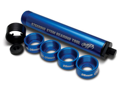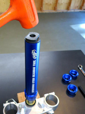 古いベアリングとパイプなどで代用する方法もあるんですが、操作性を左右する重要なベアリングだけに傷つけたり歪ませたりしないように専用の工具の使用をお奨めします。 |
